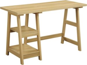 Convenience Concepts Designs2Go Trestle Desk with Shelves, Light Oak