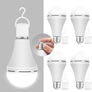 Neporal Emergency Rechargeable Light Bulbs LED 15W 80W Equivalent Stay Light Up When Power Failure 1200mAh Battery Self Charging Emergency Light Bulb for Power Outage, Home, Camping, Tent,4PK Daylight