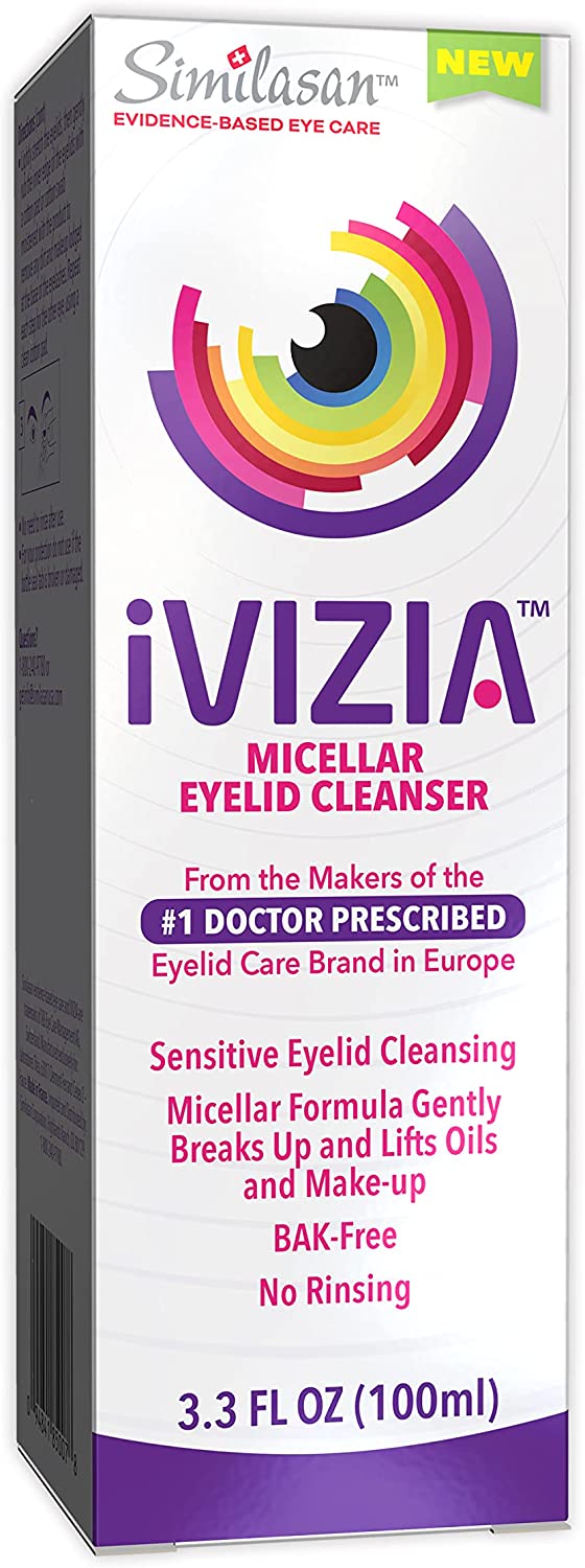 iVIZIA Micellar Eyelid Cleanser for Sensitive Eyelid Cleansing, BAK-Preservative-Free, Rinse-Free, Gently Removes Makeup, 3.3fl oz Bottle